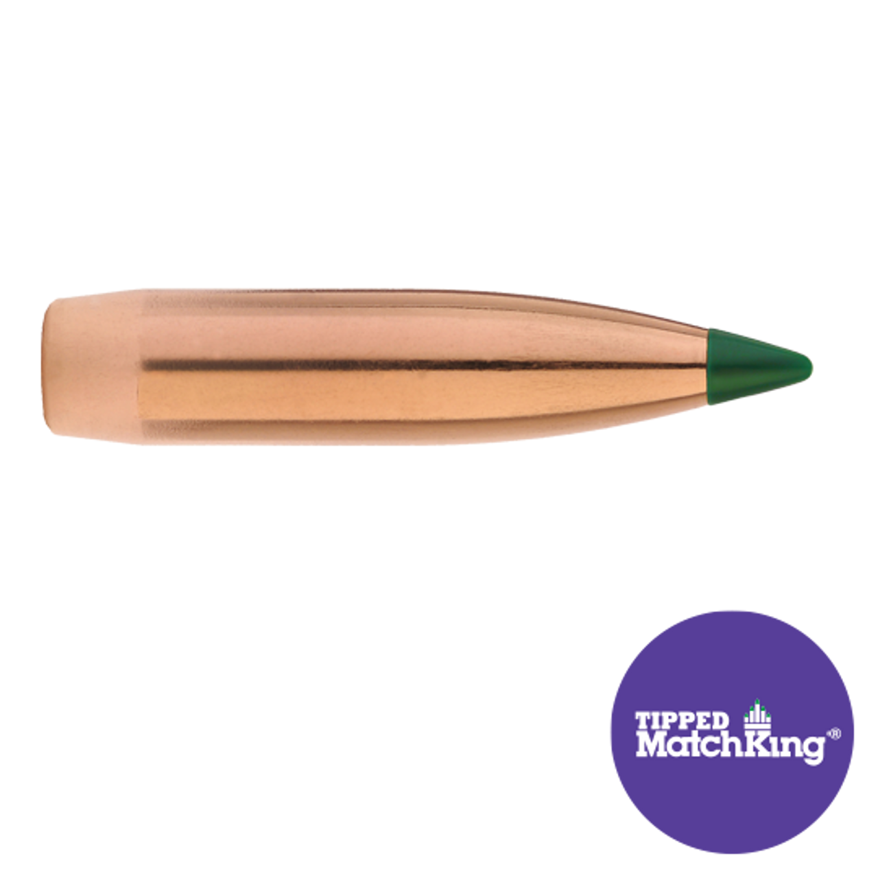Sierra has enhanced a segment of the MatchKing line by adding the acetal resin tip, thus crowning the Tipped MatchKing (TMK) bullet line. The major advantage of adding a tip to the bullet is the reduction of drag, producing a more favorable ballistic coefficient. Another benefit is reliable feeding in magazine fed firearms. The 77 grain Tipped MatchKing (TMK) allows seating to an OAL that permits cartridges to be loaded into M16/AR15 magazines. While they are recognized around the world for record-setting accuracy, MatchKing® and Tipped MatchKing® bullets are not recommended for most hunting applications. Although MatchKing® and Tipped MatchKing® bullets are commonly used for varmint hunting, their design will not provide the same reliable explosive expansion at equivalent velocities in varmints compared to their lightly jacketed Hornet, Blitz or Varminter counterparts. The #7177 was introduced in January 2015. This bullet requires a barrel twist rate of 1×8” or faster.