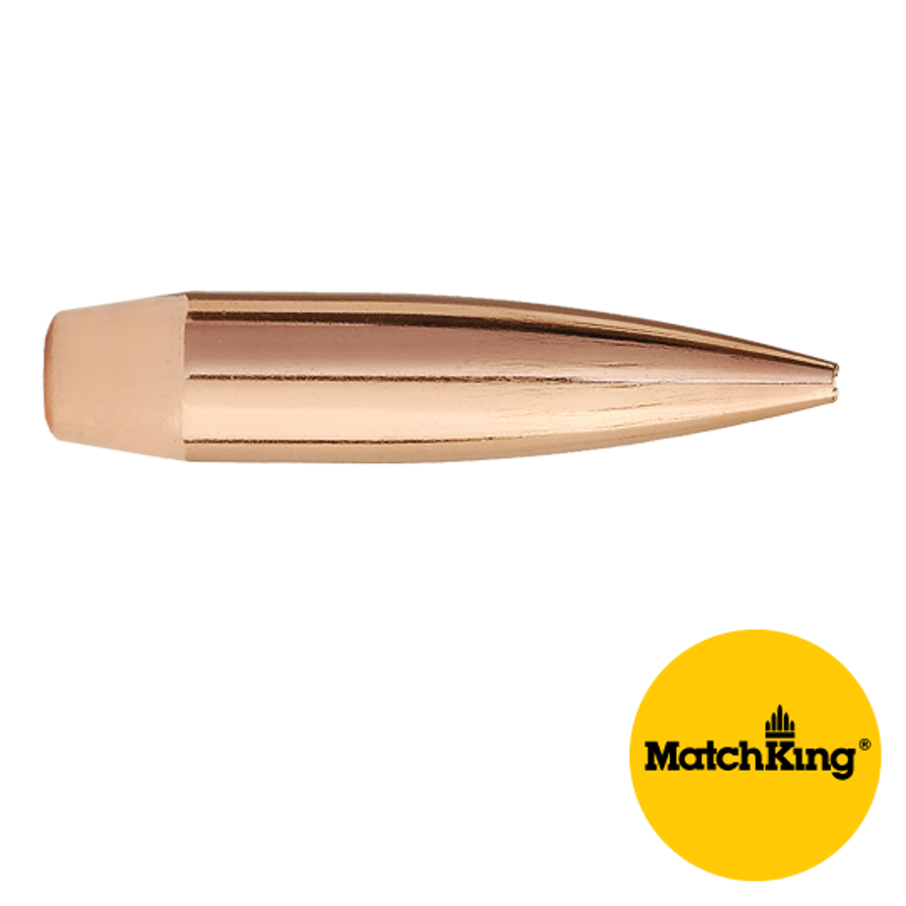 This 135 grain MatchKing® bullet #1833 is the heaviest match grade bullet currently available in Sierra’s line in 270 caliber. Designed for long-range accuracy, a long ogive point with small meplat and a boat tail shape give this bullet outstanding “low drag” characteristics in this caliber for maximum efficiency at extreme ranges. This bullet is appropriate for the 270 Winchester, 270 Weatherby Magnum, and the 270 Winchester Short Magnum.