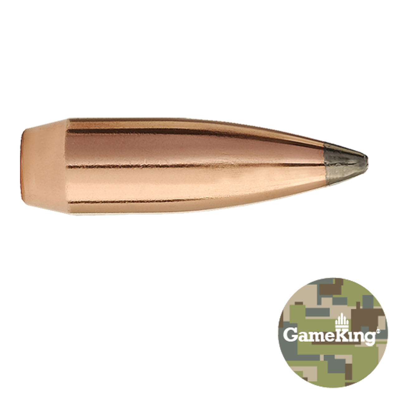 For rifles in 30 caliber, this bullet was designed for medium- to long-range hunting with cartridges having medium to large case capacities for powder. These bullets often display match grade accuracy from accurate hunting rifles. The famous Sierra Spitzer Boat Tail shape assures flat trajectory, excellent resistance to crosswinds and vertical winds, and maximum energy delivery to the target. Good penetration and expansion are characteristic of these bullets even at the reduced impact velocities at long range. With the weight range available, at least one of these bullets will prove ideal for almost any 30 caliber cartridge. The 150 grain #2125 bullet is best suited to medium game at all velocity levels.