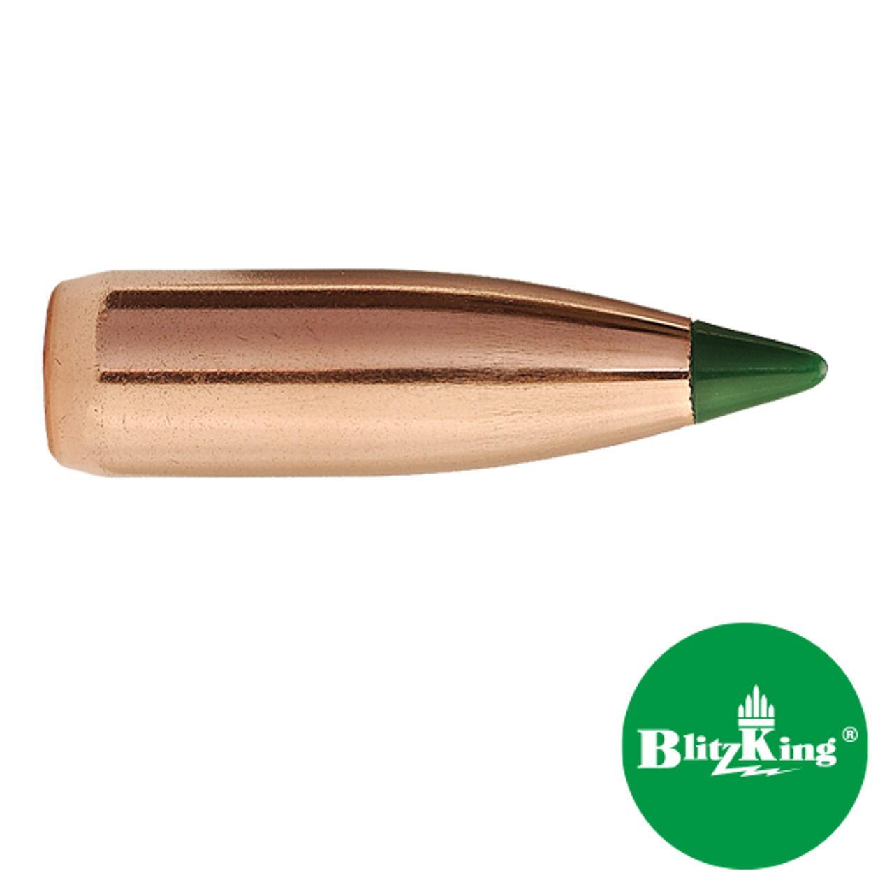 For rifles, this bullet is designed for explosive expansion in varmints and small game and with accuracy characteristic of the MatchKing bullets. The nose tips of the bullets are made of a proprietary acetyl resin compound, and the sharp tips improve the ballistic coefficient over the traditional flat-base Spitzer bullet design. The 69 grain #7170 has a boat tail to further increase ballistic coefficient compared to a flat-base design in these bullet weights. All the BlitzKing bullets in 22 caliber are designed to be fired at muzzle velocities up to 4400 fps.