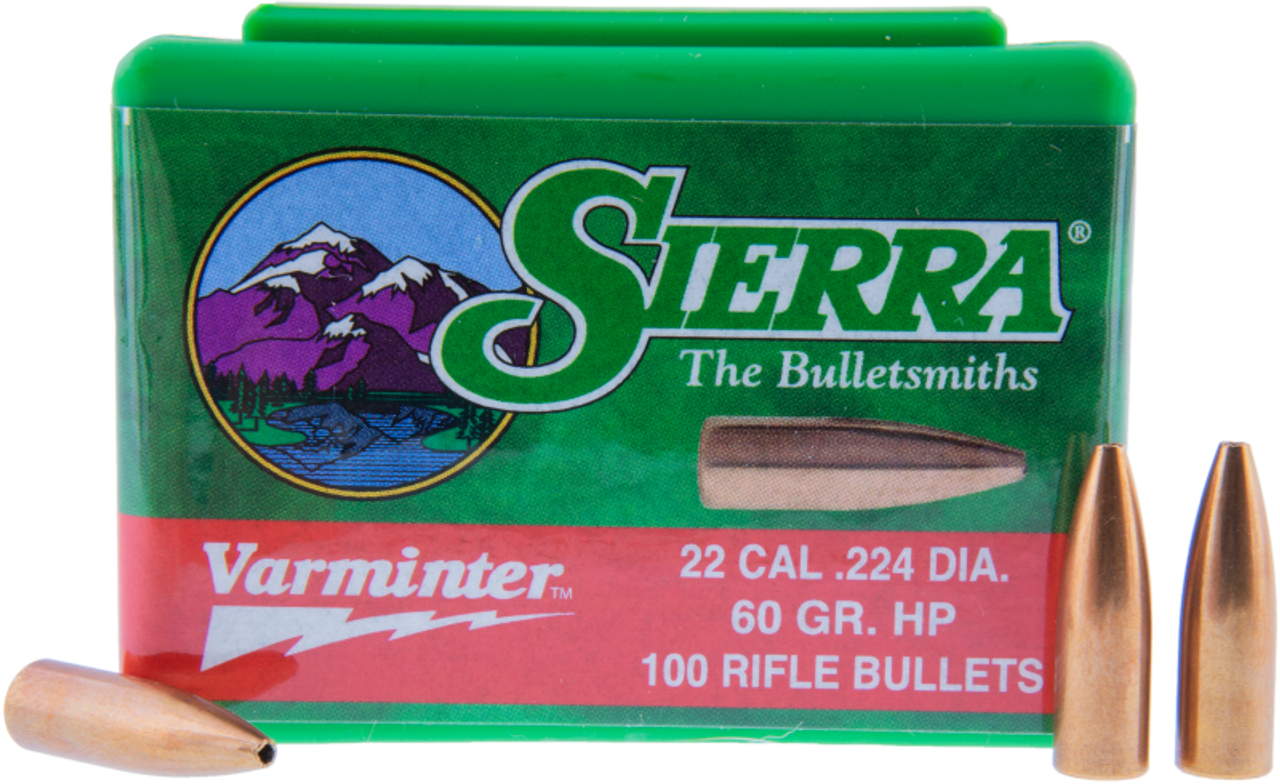 For rifles, this is a high-velocity bullet designed to give precision accuracy with the explosive expansion of Sierra’s Varminter-style construction. This bullet is at its best when fired from the larger-capacity cartridges, such as the 22-250 or 220 Swift in rifles with barrels having 1×14″ twist rates, stabilizing easily for excellent long-range accuracy and effective expansion. Normally, 1×12″ or faster twist rates work best for medium-capacity cases, such as the 223 Remington. These bullets are excellent for long-range varmint hunting.