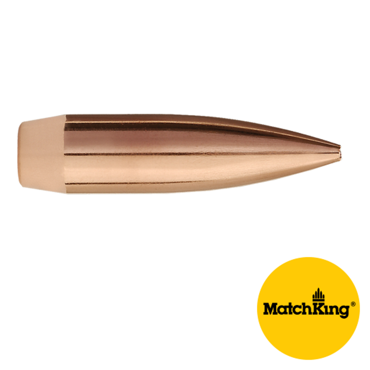 MatchKings® are the pride of the Sierra bullet family, unmatched worldwide and truly world class in all respects. Competitive shooters have relied on the consistent accuracy of Sierra’s MatchKings® for decades, resulting in a history of state, national and world records that is the envy of our competitors. In 1995, Sierra worked with military ordnance experts to produce a superior long-range bullet for the M21, M24 and M40A1 sniper systems. The result was the new 175 grain #2275 MatchKing® bullet. This bullet has also generated considerable interest among competitive Service Rifle match shooters. A higher ballistic coefficient compared to the 168 grain bullet (#2200) allows it to remain supersonic at 1000 yards when fired from 308/7.62mm caliber Service Rifles. Sierra MatchKing® bullets have set the standards worldwide for consistent accuracy in handguns as well as rifles. Since the introduction of the high performance Remington XP-100 and similar handguns chambering larger rifle cartridges, all 30 caliber MatchKings® have been used in handgun silhouettes and long-range target competitions. Sierra’s famous MatchKing® design assures superb accuracy, flat trajectory, and high momentum delivery with low sensitivity to crosswinds at all ranges. While they are recognized around the world for record-setting accuracy, MatchKing® and Tipped MatchKing® bullets are not recommended for most hunting applications. Although MatchKing® and Tipped MatchKing® bullets are commonly used for varmint hunting, their design will not provide the same reliable explosive expansion at equivalent velocities in varmints compared to their lightly jacketed Hornet, Blitz or Varminter counterparts.